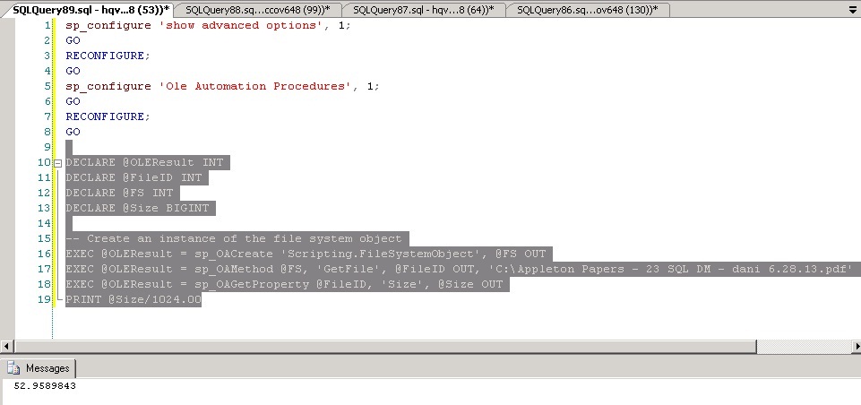 Change the below shown line from an above given code for any customization. For example, the code below ran against EMPLOYEE database also the below screen show comparison of outputs from DMV’s v/s sp_spaceused